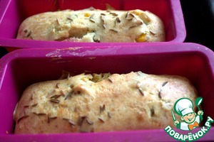 Остатки теста ушли в такие мини формы "кирпичик". Весь верх посыпала тмином. Можно тёртым сыром в конце.