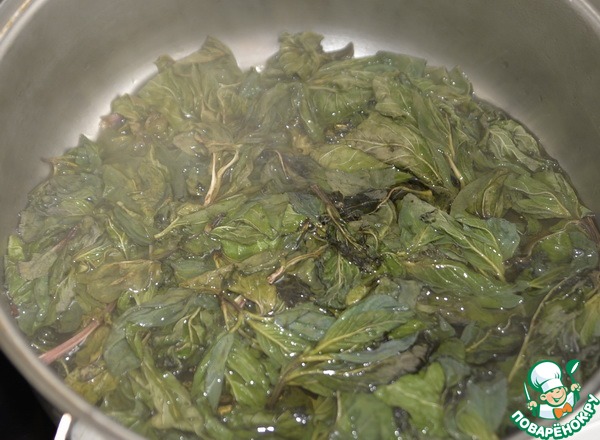 Мяту заливаем водой, доводим до кипения и отставляем остывать и настаиваться при закрытой крышке. У меня мята слегка подсохшая.