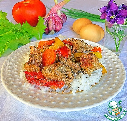 Нежнейшее мясо с обилием овощей и вкуснейшим соусом. Несложный и ароматный вариант для семейного обеда или ужина.