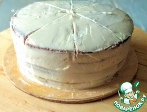 Выровнять торт из оставшегося крема. Я сделала надрезы, чтобы удобно было украшать торт.
