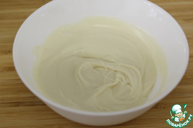 Белый шоколад растопить на водяной бане или в микроволной печи.