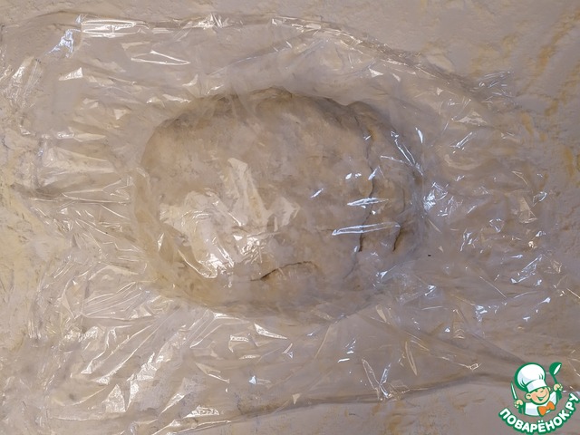 Замотаем её в плёнку и уберём в холодильник на 2 часа. -