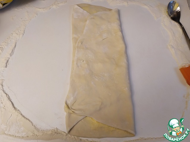 Теперь повторим все описанные выше действия. Снова намажем, сложим, подвернём, повернём, развернём, раскатаем. -