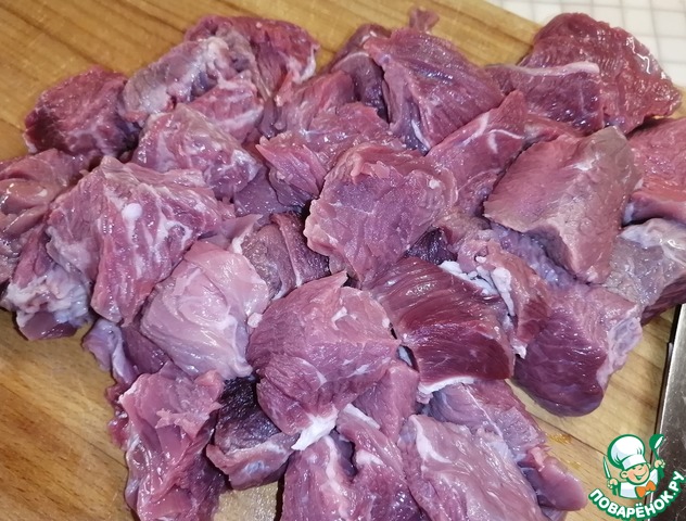 • Крупными кусками порезать говядину.