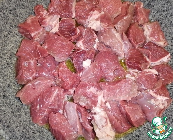 Отправить в сковороду кусочки говядины и обжарить на среднем огне 15 минут.