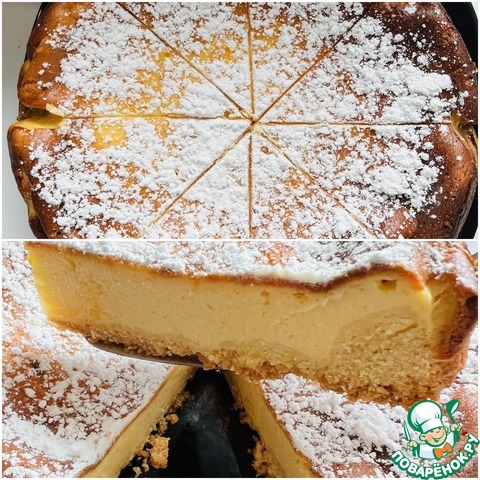 Выкладываем форму бумагой для выпечки, смазываем маслом ( я не смазала и запеканка прилипла немного). Моя форма 20 см, поэтому запеканка получилась не высокой. Возьмите форму 14-15 см, получится высокая, или можно выпекать порционно. Выпекаем в разогретой до 200 градусов 40-45 минут, до сухой лучинки, последние 10 минут накрываем фольгой. Достаём из духовки, даём хорошо остыть пару часов, я убрала в холодильник.