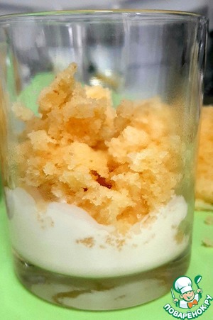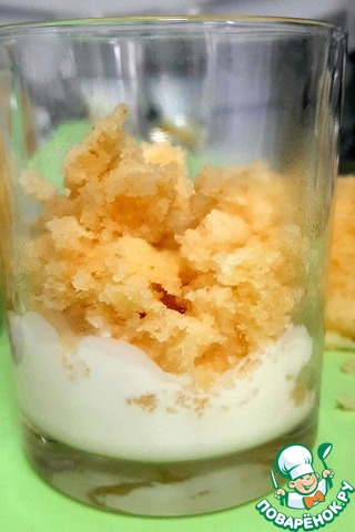 В стакан укладываем кусочки манника и сверху поливаем кремом. Чередуем слои. -