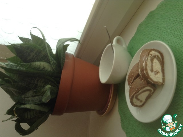 5. Выложить крем на печенье, разровнять, свернуть рулетом и убрать в морозильник на 20-30 минут;