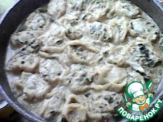 Добавляем сметану или сливки... перчим, солим... немного тушим.