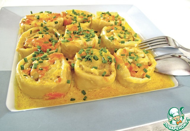 Скатаем в рулон тесто с мясом... Хорошенько защипаем края..