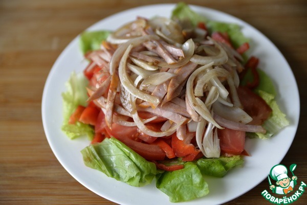 Рецепт «Салат из полукопчёной колбасы с овощами»:
