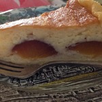 Я пекла с персиками, отношения с абрикосами у меня не сложились и они остались кусочками, я и не против. Персики были очень сочные, так что я на тесто выложила тонкий слой крема, потом фрукты, сверху остальной крем, побоялась, что тесто иначе размокнет. Тесто получилось песочное, рассыпчатое. Я правда в нём немного изменила пропорции. Взяла 130 г муки, 55 г масла, 1 желток, 1 ст ложку сахара и щепотку соли.