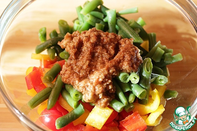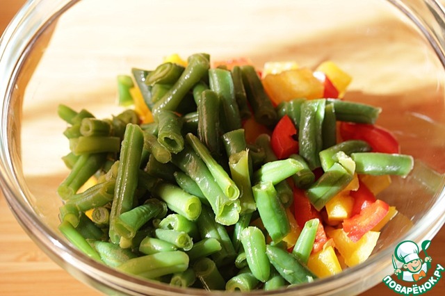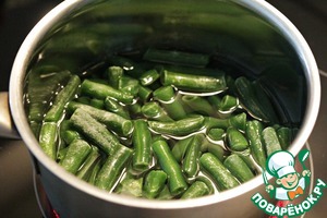 Стручковую фасоль отварить в подсоленной воде до той степени готовности, какая вам нравится, затем охладить.