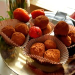 Аллочка, пришла с отчетом, оооочень вкусные получились трюфели, с лёгкой приятной ягодной кислинкой и бархатной тающей консистенцией. Совсем несложные в приготовлении. Вместо бейлиза добавила вишнёвый ликёр, остальное все по рецепту. Сформировала их за три подхода, так как масса быстро начинала таять и мазалась на руки, я её возвращала на какое то время обратно в холодильник, в конце уже приноровилась и дело пошло быстрее)) Сегодня утренний кофе с трюфелями, мммм вкусно Спасибо!