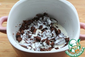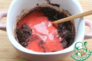 • Подогреть до теплого клубничное пюре и добавить вместе с ликером в шоколад.