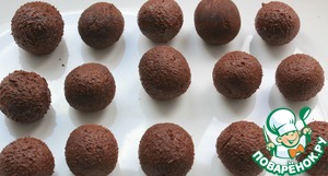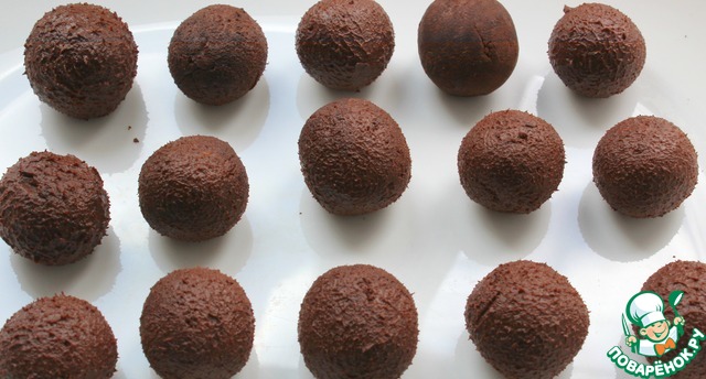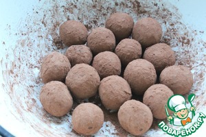 • Достаем шоколадную массу из холодильника и катаем шарики-конфетки.