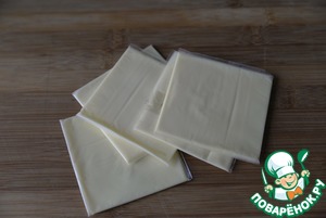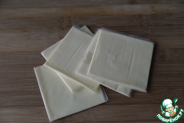 Для приготовления этой закуски подойдёт любой сыр плавленный в пластинах. Я делала половину указанного.