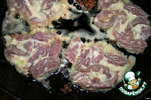 Мясо нарезать,как для бефстроганов (на небольшие полоски),и положите в кастрюлю.