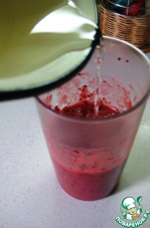 Влить остывший сахарный сироп во фруктовое пюре. Перемешать.