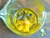 Смешать оливковое масло, горчицу и каперсы. Каперсы в масле станут менее острыми. |