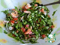Описание: Безусловно, если Вы не любите сельдерей, это не для Вас. Ведь в салате изобилие этой полезной зелени, креветки, кусочки помидоров и вкуснейший соус. Угощайтесь.