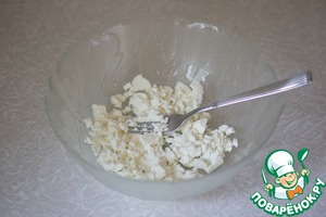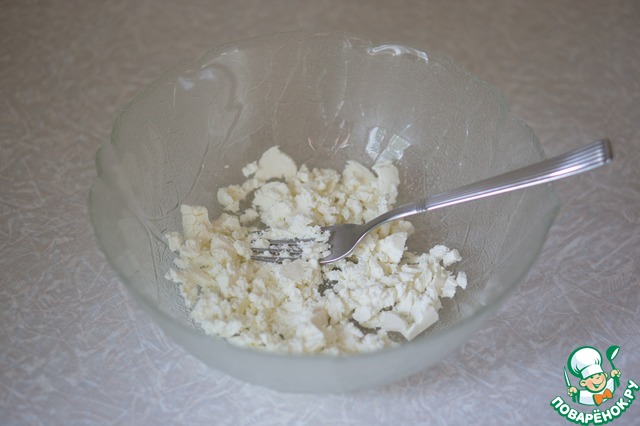 Добавьте к сыру сметану и пропущенный через пресс чеснок.