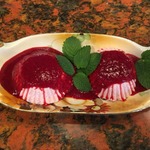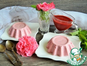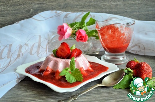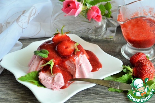 Готовое бланманже освободить от формы, подавать с клубничным соусом.