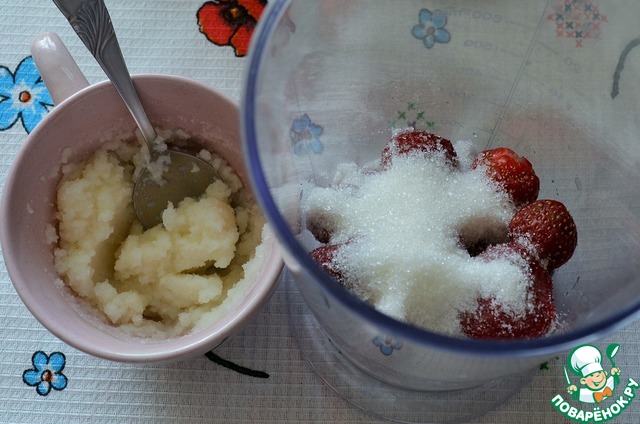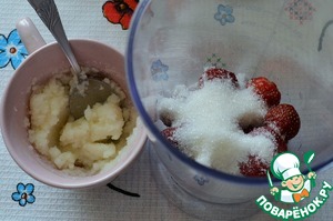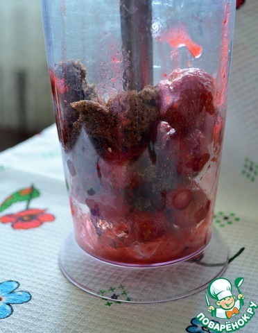Ягоды вымыть и обсушить, пробить в блендере с сахаром. -