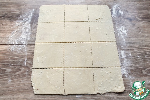 Ставим в горячую духовку и выпекаем в течение 15 - 18 минут, до легкого зарумянивания краев теста. В тесте мало сахара, поэтому не ждите сильный румянец на них.