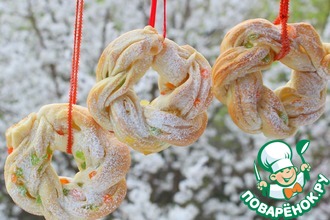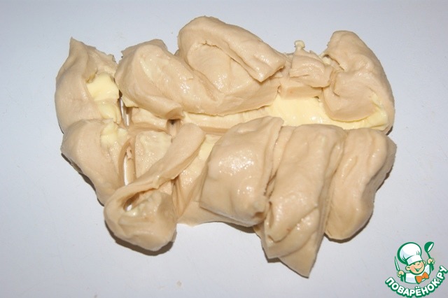 Распрямить тесто в пласт, смазать верх маслом, закрыть края и разрезать на куски.