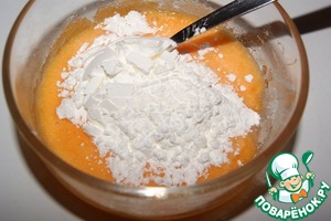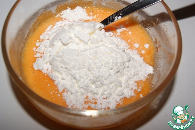 Желток растереть с сахаром и крахмалом.