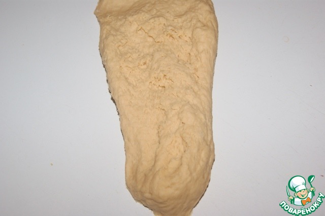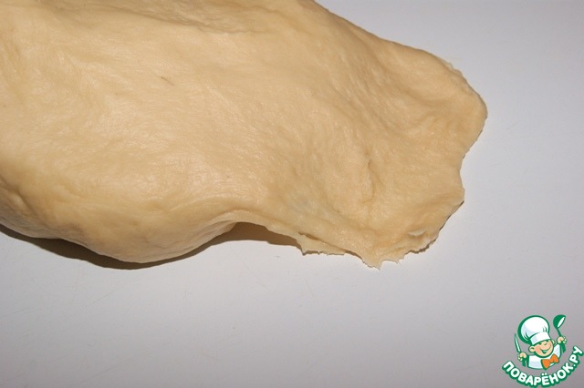 Поместить тесто на рабочую поверхность. Вымешивать его не менее 5 минут. Растягивая в разные стороны...