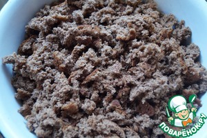 Когда бисквит полностью остынет, порежем его на маленькие кубики или перетрем в крупную крошку. Я просто рву руками на маленькие кусочки.