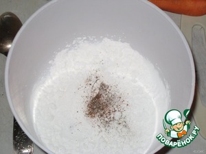 В крахмал добавить немного соли и перца, перемешать.