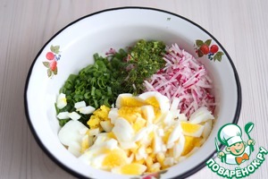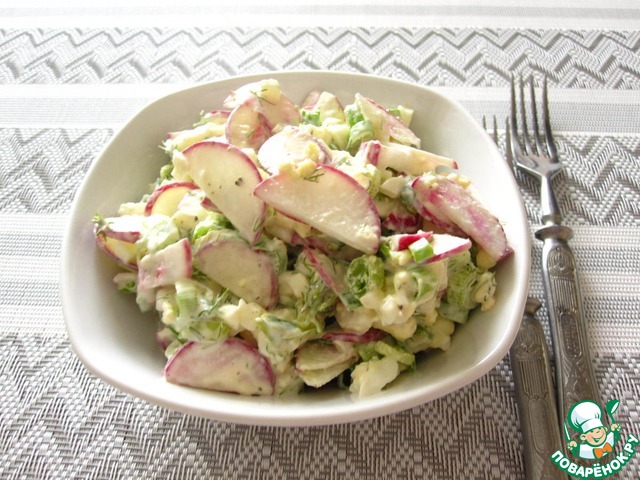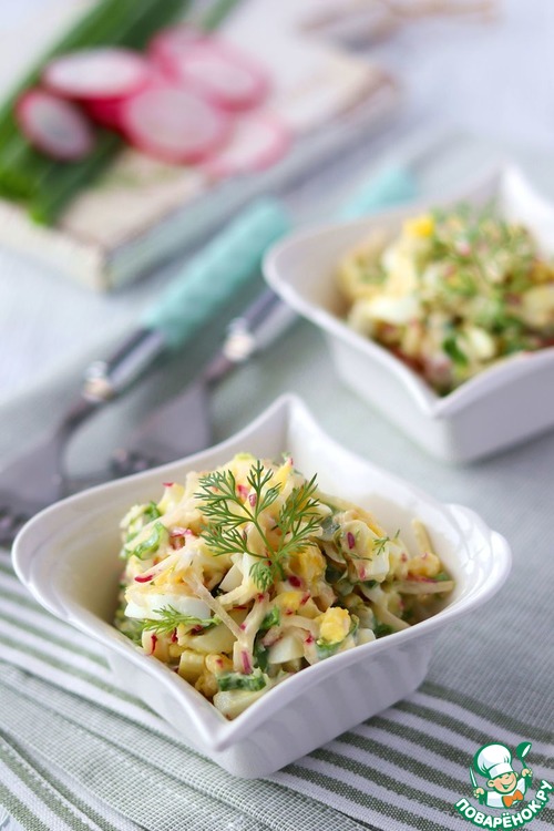 Приятный на вкус, нежный салат из яиц и редиса будет хорошим дополнением на вашем обеденном столе.