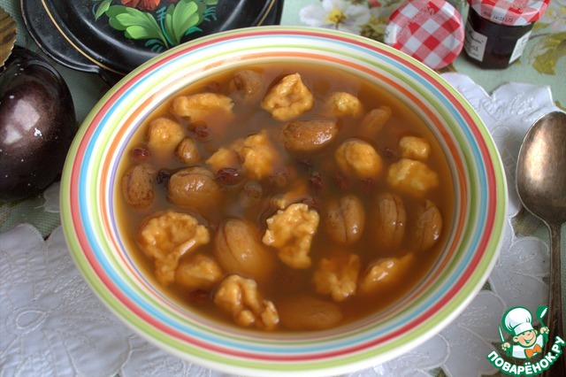 Я с детства помню этот суп. Мама варила и загущала крахмалом, потом ели со сметаной. В немецкой кухне есть два варианта подачи: загустить сливками с мукой сваренные сухофрукты или сварить с быстрыми галушками. В жару и детям и всей семье отличная идея лёгкого обеда или десерта.