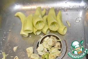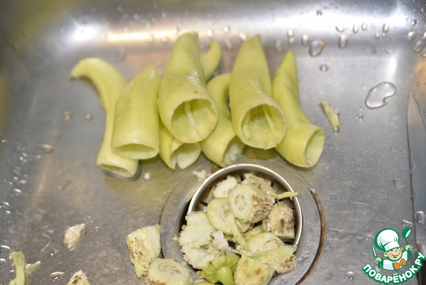 Перец моем, обрезаем хвостики, чистим от семян.