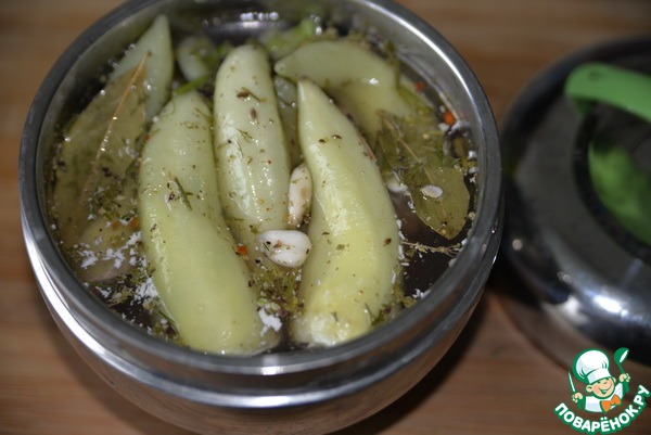 Даём перцу постоять 2 часа при комнатной температуре, а далее на ночь отправляем в холодильник. -