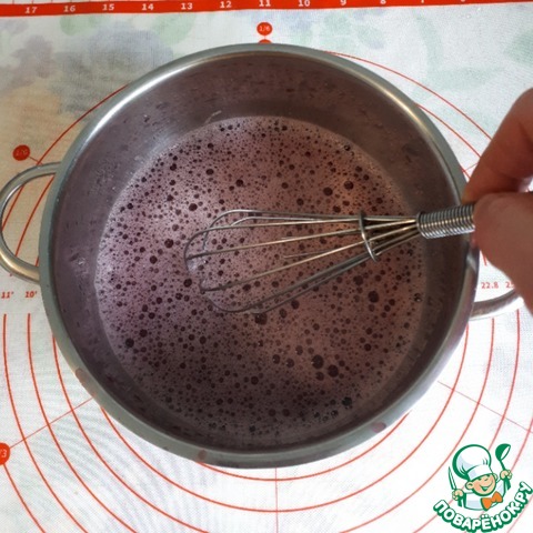 Приготовим желе. Желатин залить водой. Вишневый сок довести до кипения, отставить и добавить желатин, хорошо расмешать.