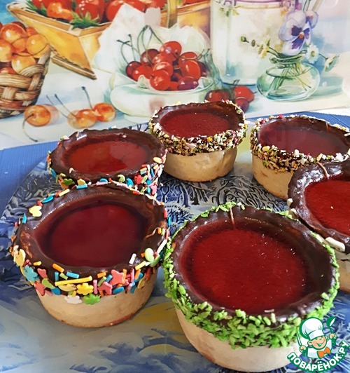 Такие вкусные корзиночки приготовить совсем не сложно. Их можно подать в качестве десерта на праздничный стол, особенно они понравятся детям, ведь корзиночки такие яркие и в них сочетаются несколько вкусов-песочное тесто, шоколад, зефир и желе.