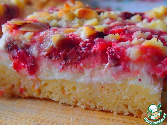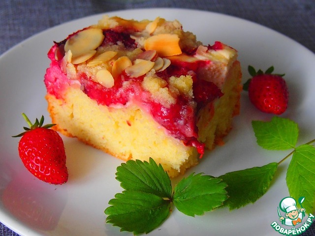 Дорогие поварята, предлагаю испечь яркий и вкусный клубничный пирог с миндалем.