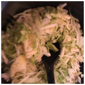 Капусту нашинковать и добавить к овощам. Перемешать и дарить все вместе 15 минут.