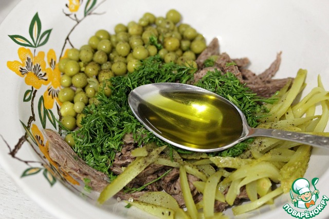 И зеленый горошек, предварительно отцеженный от жидкости.