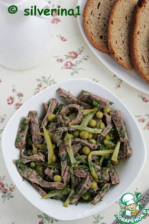 Вкусный и сытный мясной салат. Лаконичный по составу – всего три основных ингредиента, при наличии всех составляющих готовится очень быстро.
