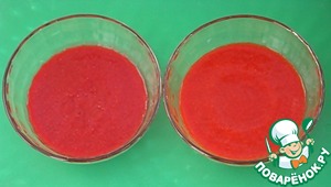 Должно получиться по 250 г пюре клубники и малины. -