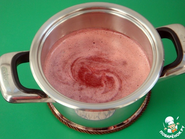 Растворить желатин либо на плите, либо в микроволновой печи, не доводя до кипения (при 250 Вт 1,5 минуты). Добавить в горячую ягодную массу (её температура должна быть не выше 60°) и хорошо перемешать.