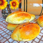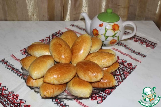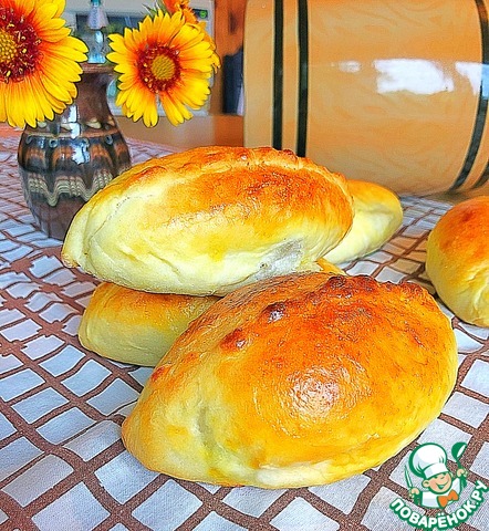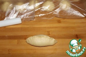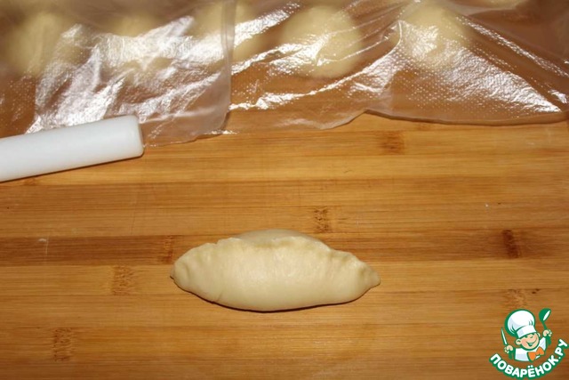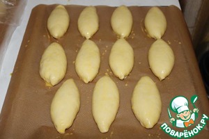 Выкладываем пирожки на противень швом вниз. Даем подойти 20-25 минут. Смазываем желтком, разведенным 1 ст л воды.