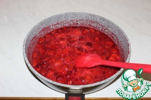 Разводим крахмал в небольшом количестве воды и добавляем к ягодам. Перемешиваем, доводим до кипения и провариваем 1 минуту.