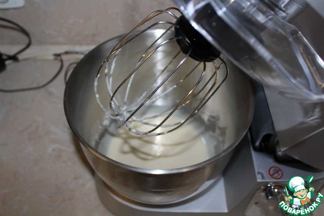 Тесто замешиваю с помощью миксера. В теплые сливки добавляем дрожжи, сахар и немного муки.