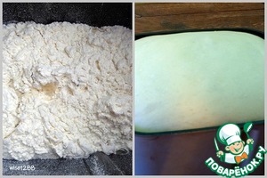 Для приготовления теста я воспользовалась хлебопечкой. Все ингредиенты загрузить в хлебопечку в порядке, указанном в инструкции. Тесто готовилось 45 мин. Для ручного замеса перемешать все жидкие ингредиенты и отдельно все сухие, затем соединить сухие ингредиенты с жидкими. Замесить тесто и поставить в теплое место, на расстойку на 40 минут.